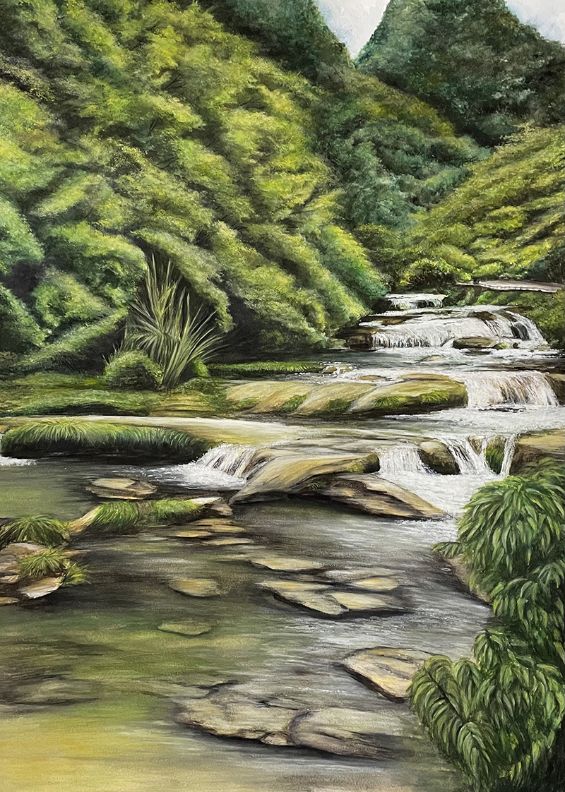 「台灣之靈」壯麗和多樣性,並透過水彩媒材營造出柔和、流動的視覺效果。