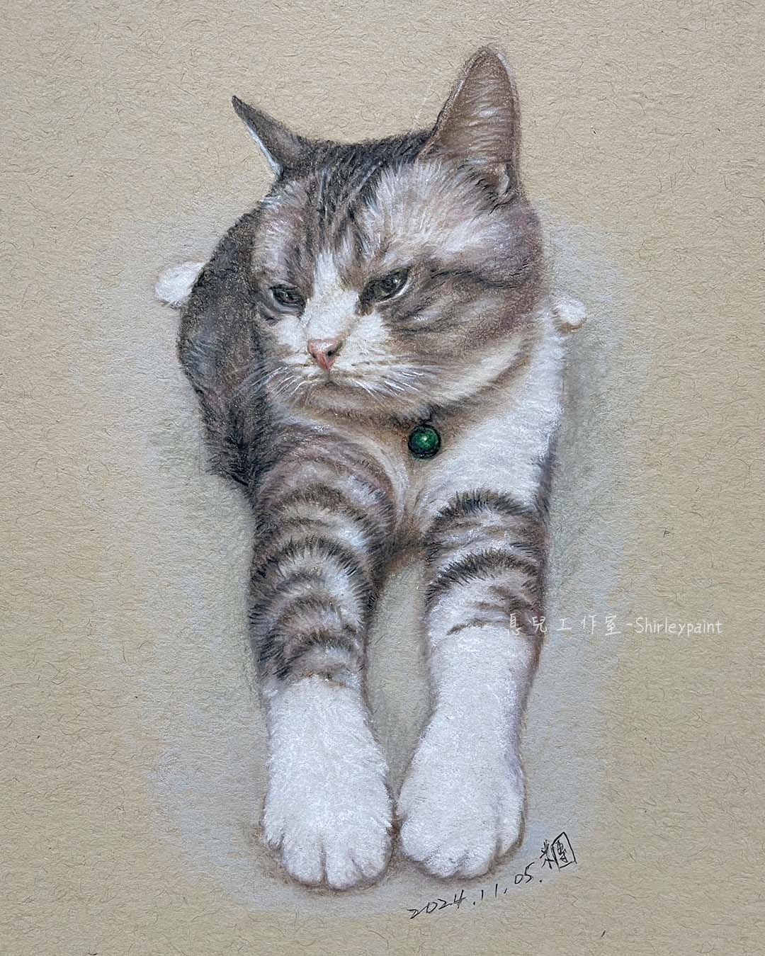 當委託人看到完成的畫作時,他的手微微顫抖,眼中泛起了淚光。他輕聲說:「就像牠回來了一樣。」那一刻,我知道,這幅畫達到了它的使命把愛與思念凝聚在畫布上,為逝去的貓咪創造了一個永恆的歸宿。