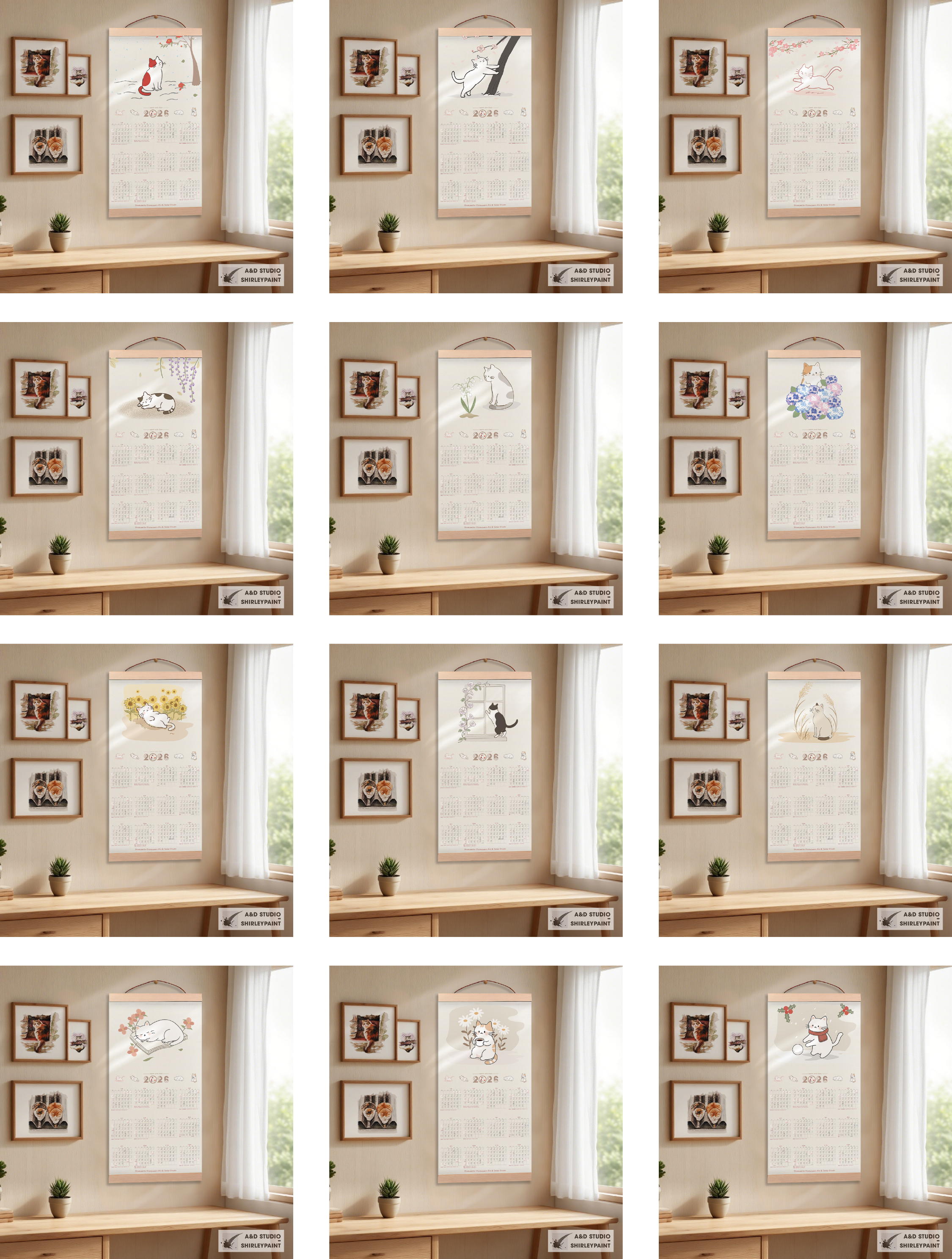這款年曆以 簡約插畫 × 文青風格 呈現,畫面中的小貓靜靜守候在四季花影間,象徵著生活中的溫暖與陪伴。