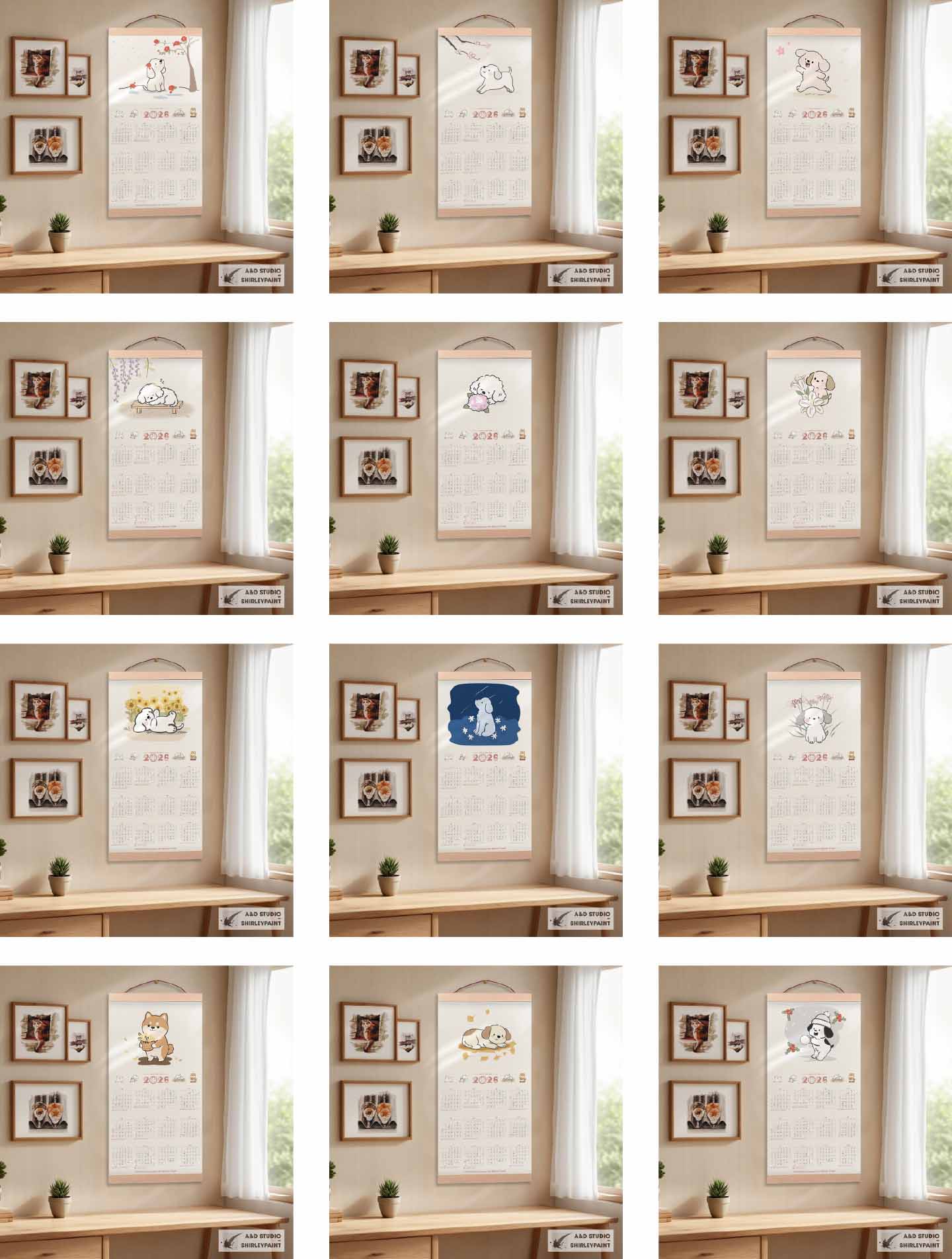 這款 2026 文青插畫掛曆,以簡潔柔和的線條,描繪一隻陪伴四季的小狗,搭配象徵季節的花卉與小物,營造出清新療癒的氛圍。