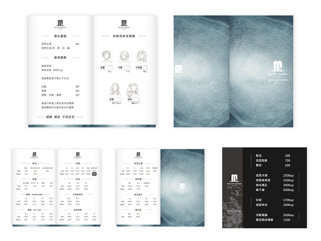 設計採用 多頁式編排,確保價目表的內容清晰分明,無論是 剪髮、燙髮、染髮、護髮 或 特殊造型服務,都能以最直覺的方式呈現,讓顧客一目了然。