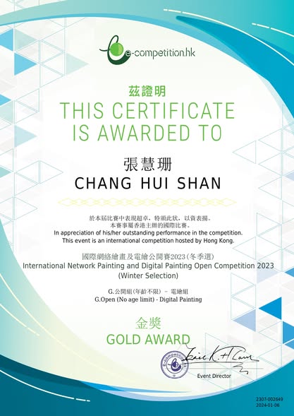 榮獲 E-competition.hk 國際網絡電繪公開賽2023(冬季選)金獎
